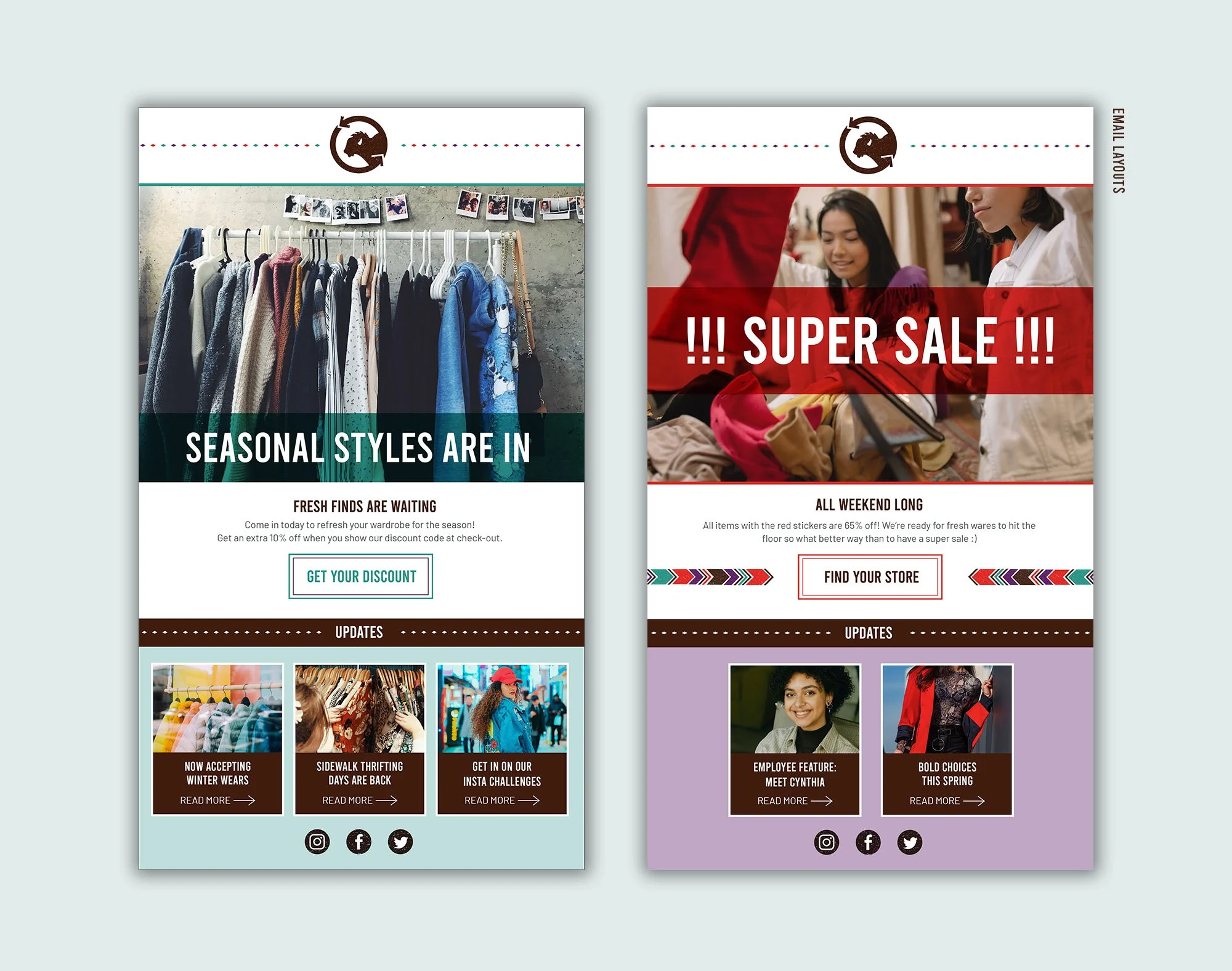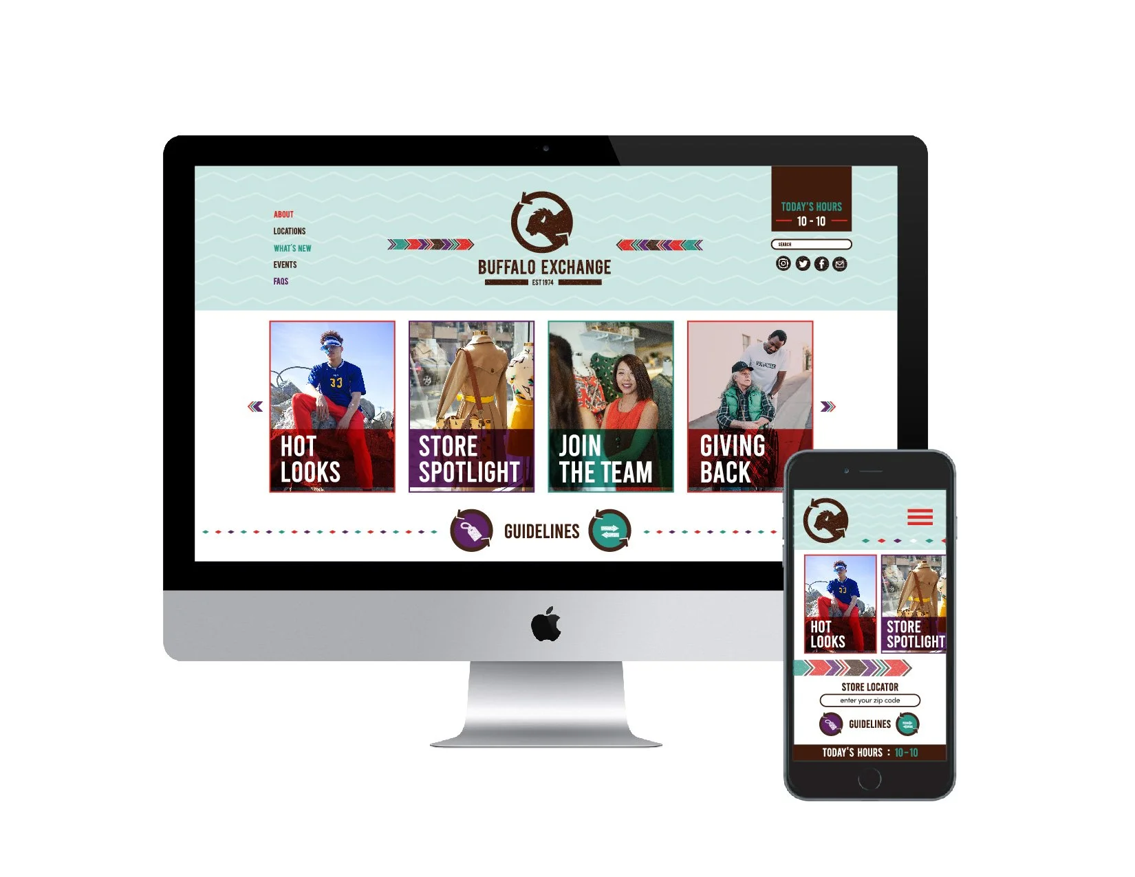 Buffalo Exchange is an Arizona-born, boutique chain of thrift stores for new & recycled clothing and accessories. With a fresh logo, patterns, & style guide, this new suite of marketing solutions target their young, city-dwelling audience.