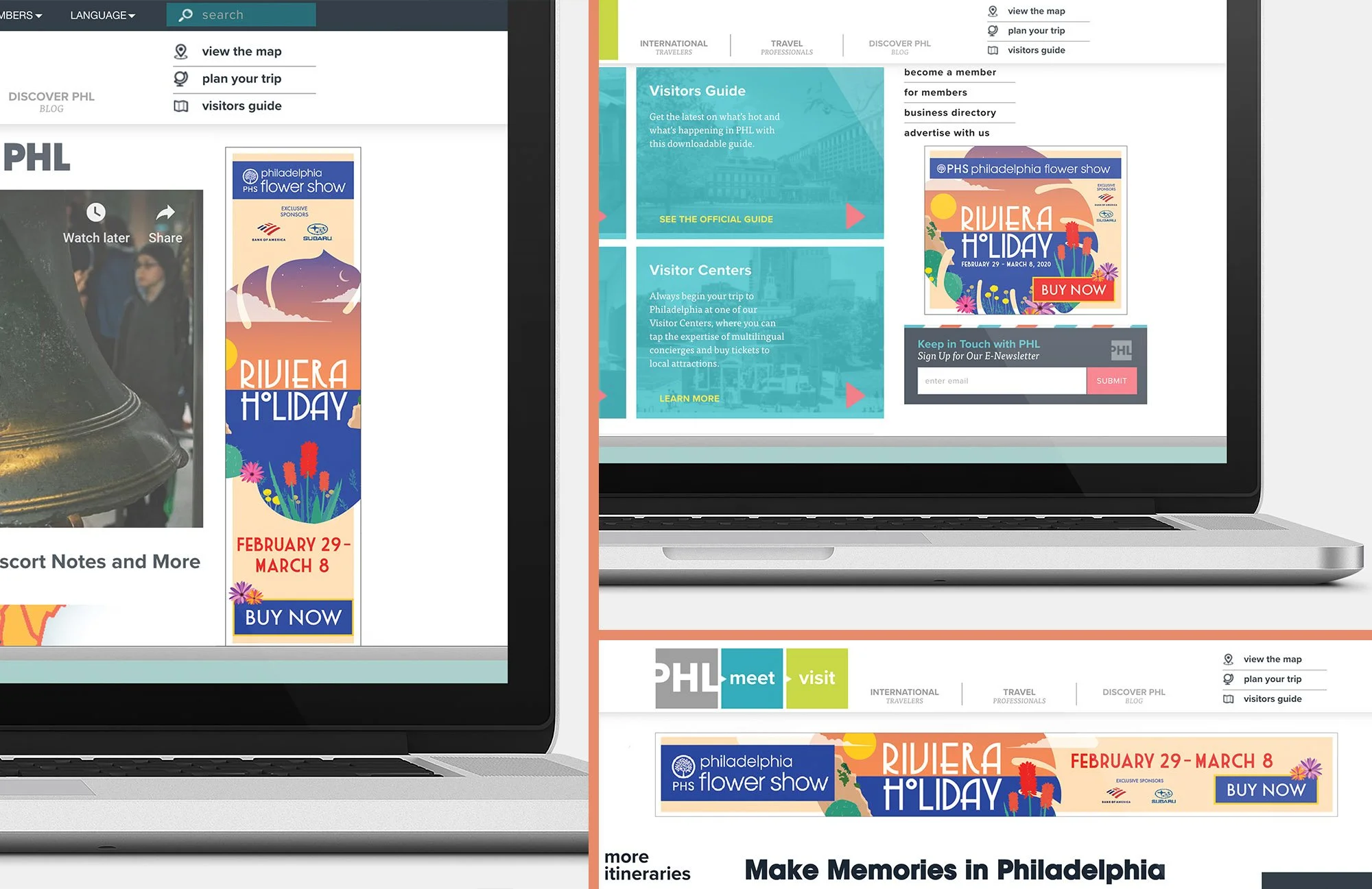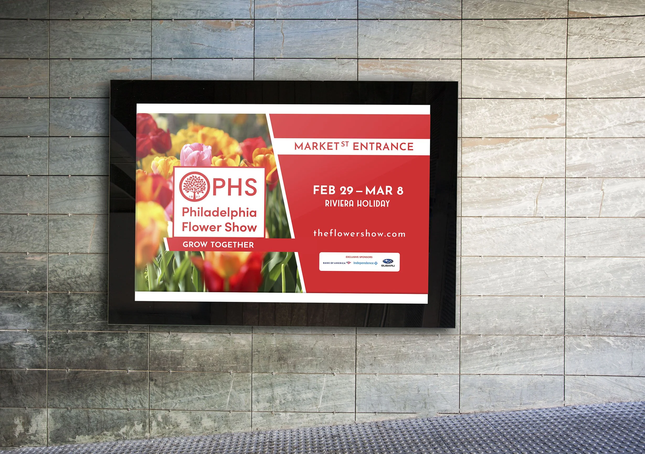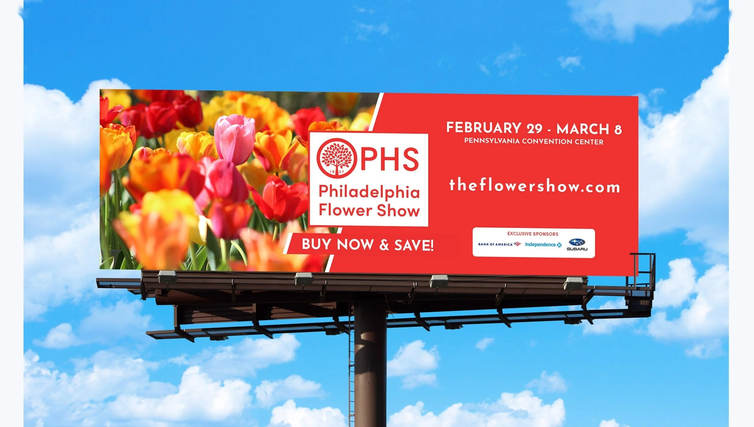 The Philadelphia Flower Show is the nation’s largest and longest-running, indoor horticultural event, featuring stunning displays by the world’s top floral & landscape designers. Target audiences include women 40+ & young families. My work, over the course of five Shows, ranged widely; from event signage, advertising, web graphics, video, and more.