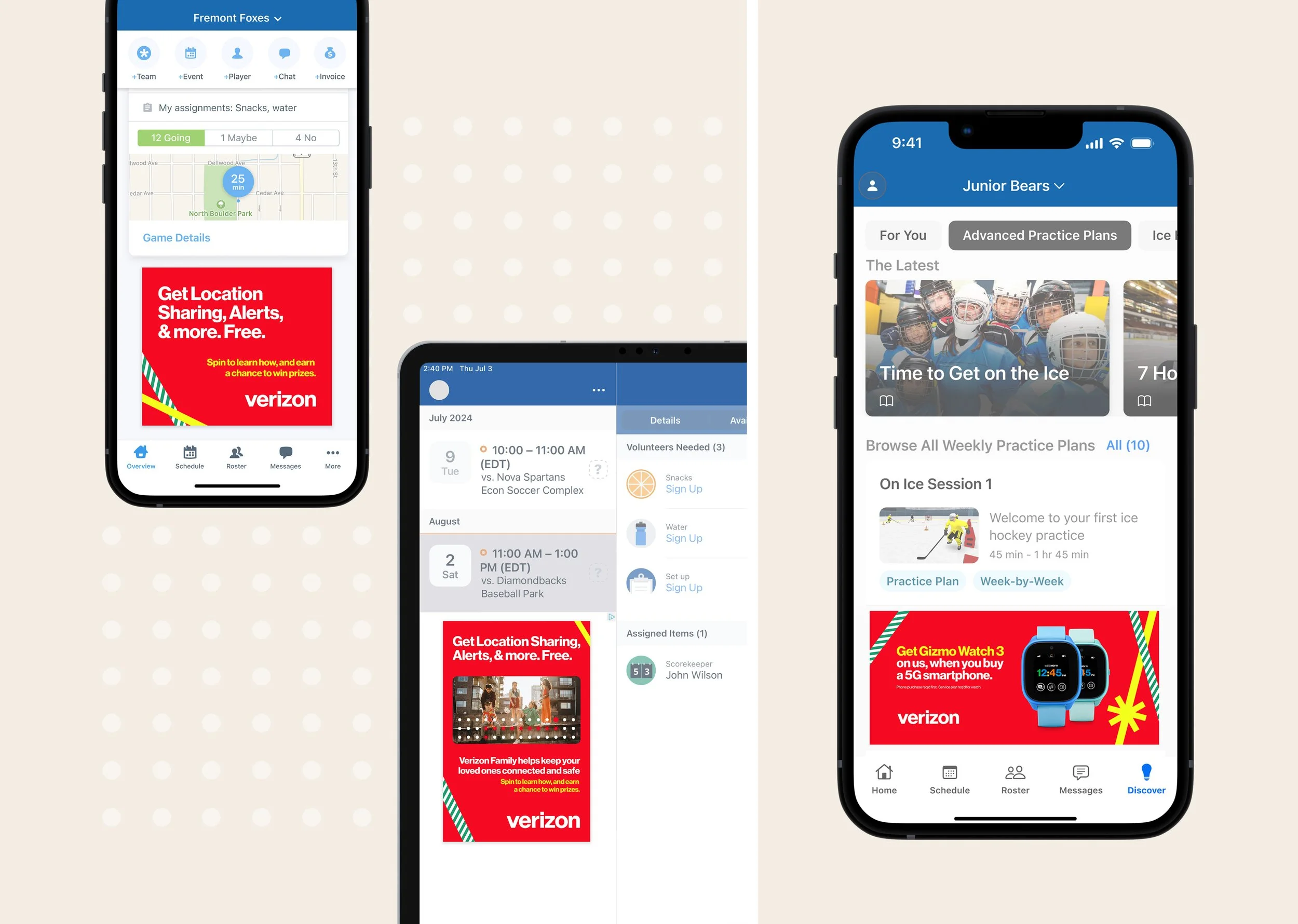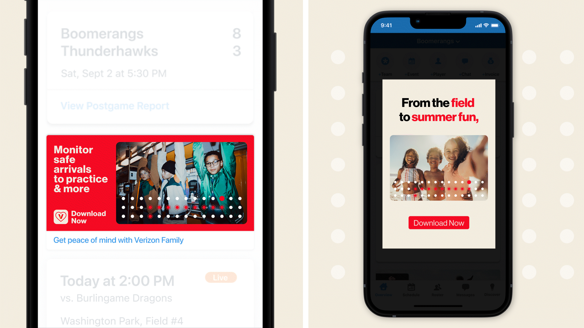 As the Senior Graphic Designer for the Brands team at TeamSnap, I’ve designed a range of assets for one of our clients – Verizon. Following their rigorous brand guidelines, I’ve created a range of ads and email graphics to showcase their kid-friendly tech and the value of their Verizon Family plans.